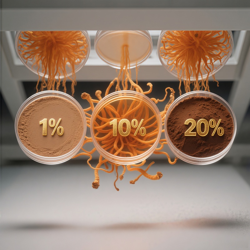 Cordycepin Content 1%, 5%, 10%, 20% ±0.5% (HPLC-UV at 260nm)